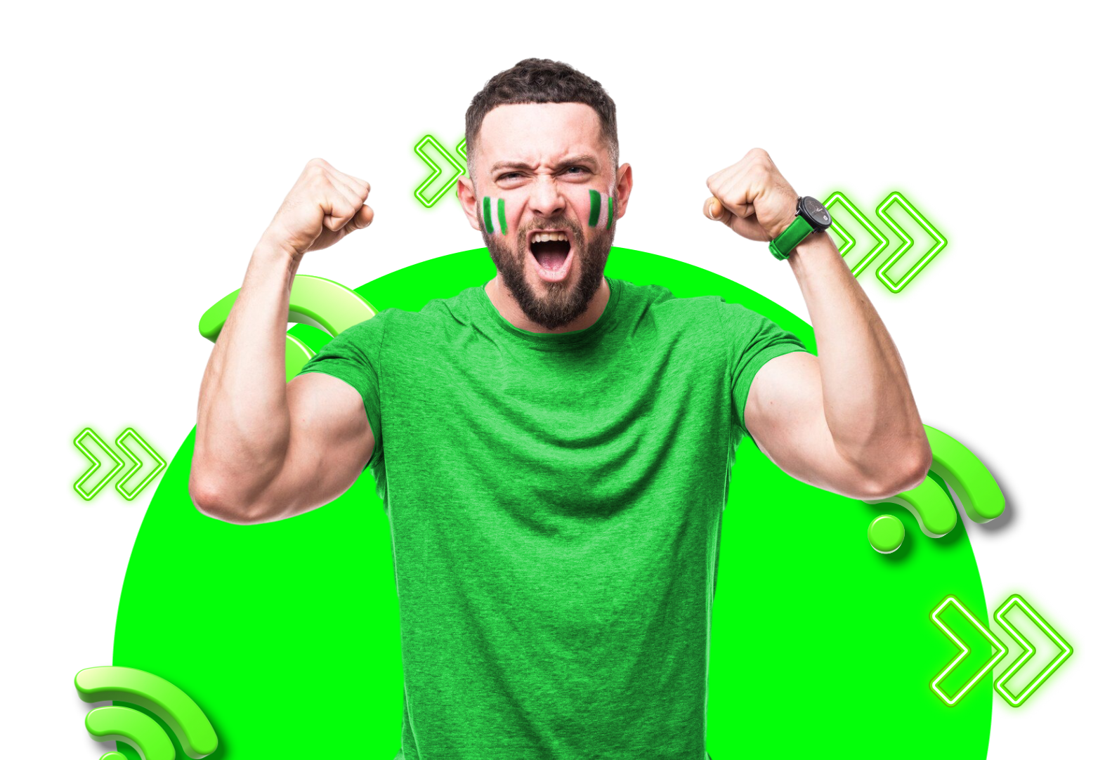 Nada de travar na hora do gol. Torça ao vivo com a velocidade da fibra.